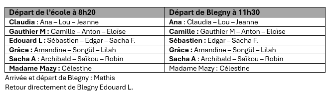 Spectacle à OPRL départ de l’école à 12h30, retour vers 15h30 (retard possible) + Avoir sa carte de bus