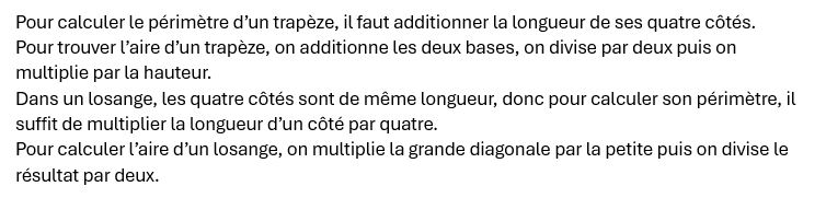 Dictée : aire et périmètre